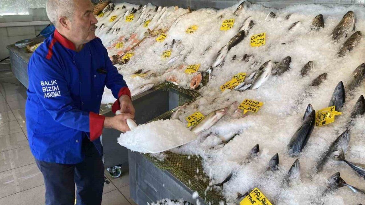 Hava sıcaklıklarının yüksek derecelerde seyretmesiyle tezgahlarda bulunan balıkları korumak isteyen balıkçılar, buzlama yöntemine başvurdu.