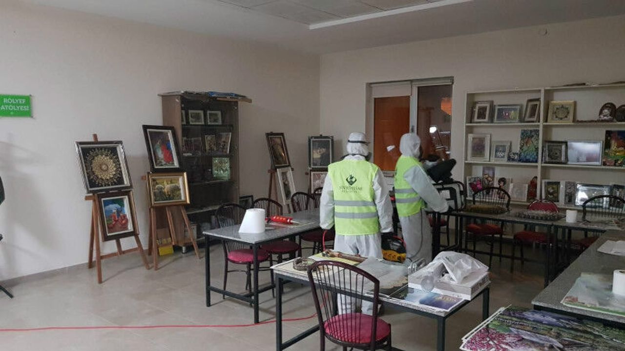 Yeni Koronavirüs (COVID-19) önlemleri kapsamında vatandaşlarıın yoğun olarak kullandığı, giriş ve çıkışların yapıldığı toplu kullanım alanlarında ve tüm resmi kurumlarda dezenfeksiyon ve sterilizasyon çalışmaları sürdürülüyor.