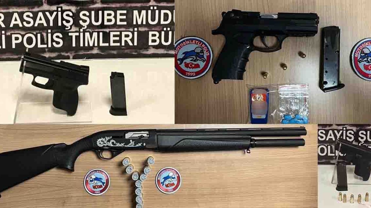 Edinilen bilgilere göre, İl Emniyet Müdürlüğü'ne Asayiş Şube Müdürlüğü ekiplerince şüpheli şahıslara ve araçlara yönelik çalışma gerçekleştirildi. Çalışma esnasında şüphe üzerine durdurulan şahıslarda ve araçlarda yapılan aramalarda, 3 adet ruhsatsız tabanca ve bu silahlara ait 8 adet mermi, 1 adet av tüfeği ve bu tüfeğe ait 10 mermi ile bir miktar uyuşturucu madde ele geçirildi.