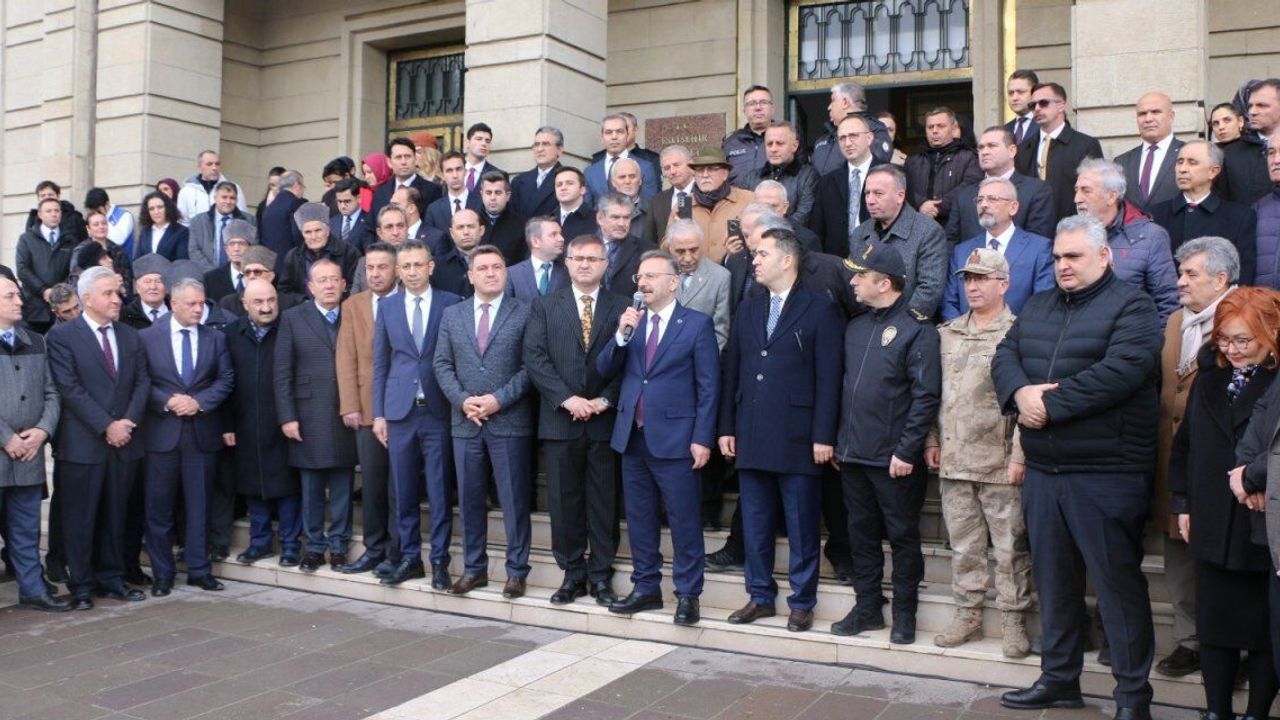 Valilik önünde personeliyle tek tek tokalaşan Eskişehir Valisi Hüseyin Aksoy kısa bir konuşma yaparak şunları söyledi: