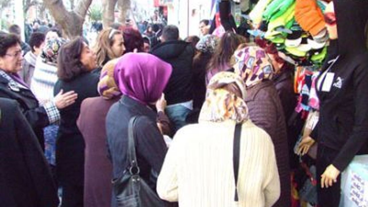 Ucuz giyim eşyasına adeta hucüm eden kadınlar arasında sert tartışmalar hatta yumruklaşmalar yaşandı.