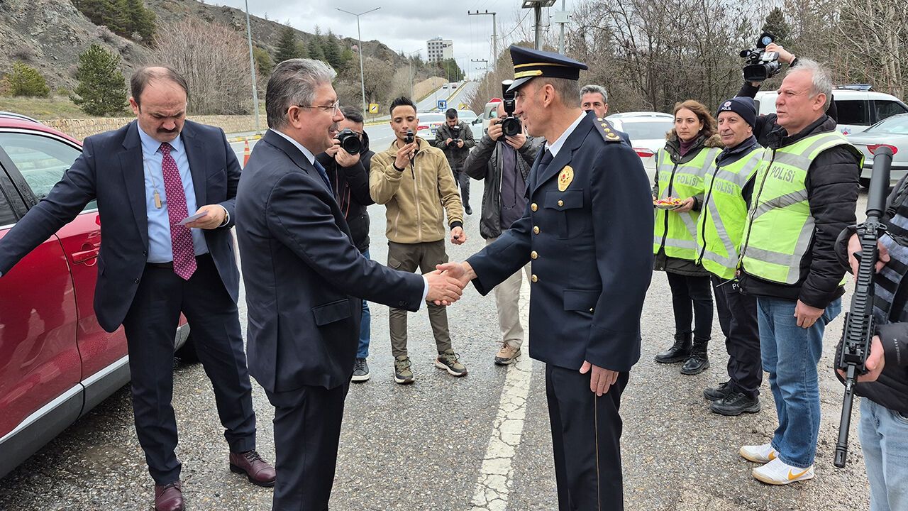 Ekipler ise, Yılmaz'a kolonya tutup şeker ikram etti. Eskişehir Valisi Dr. Erdinç Yılmaz, uygulama noktasında durdurulan araçların sürücüleri ve yolcuları ile de bayramlaştı.