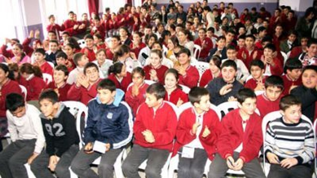 Es-Es'in futbolcuları Adem Sarı ve Alper Potuk, ile genel menajeri Kerem Atılmaz Yenikent İlköğretim Okulundaki öğrencilerle bir araya geldi.